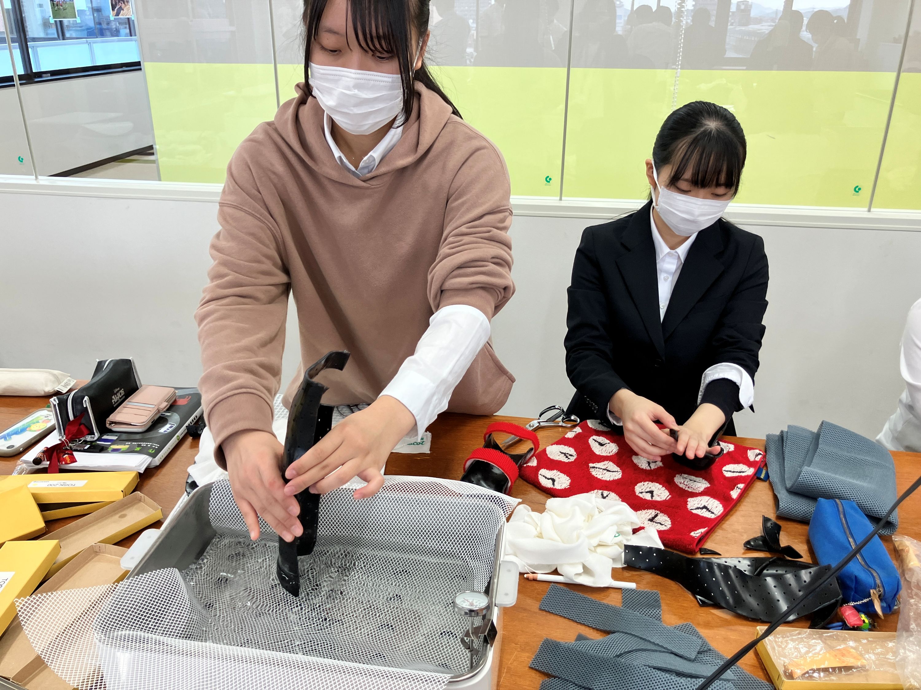 フィッティングに苦戦する場面もありましたが、学生同士で声を掛け合い、協力しながら楽しく制作を進めていました☺
