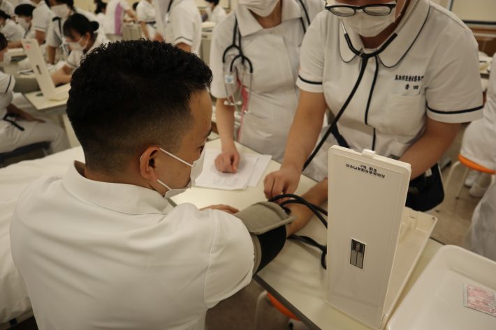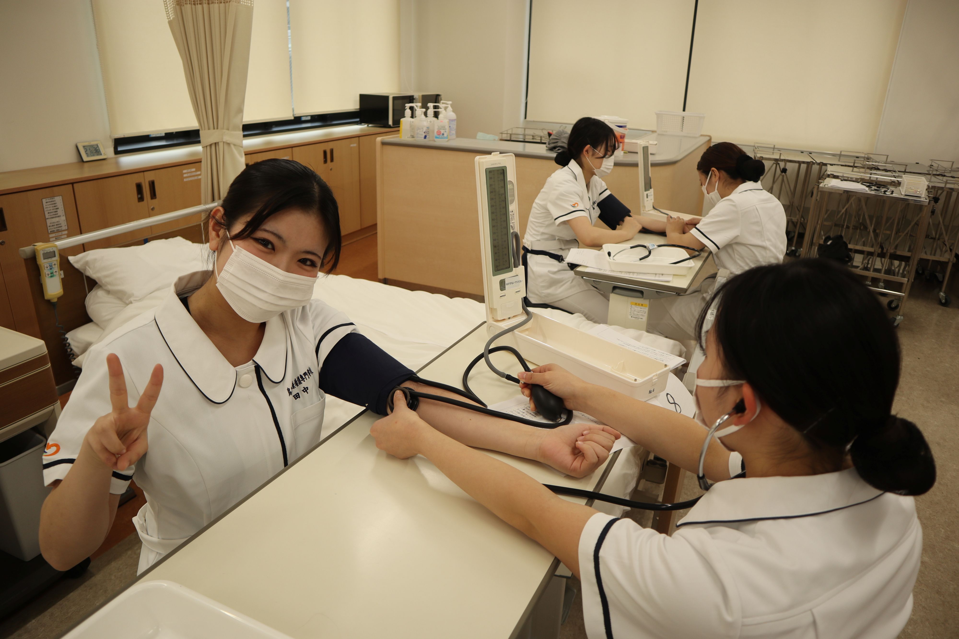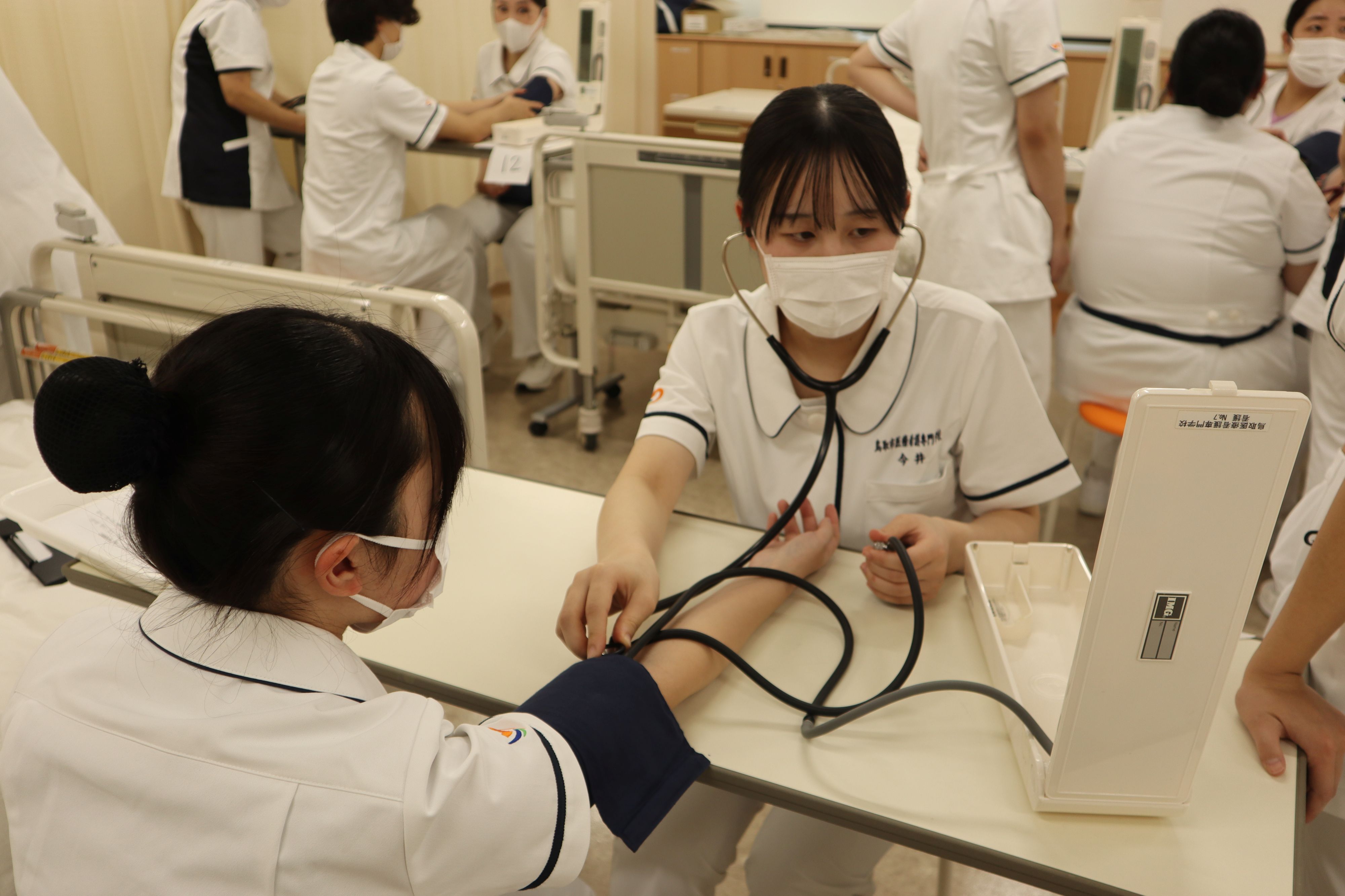 2025.12.6土 NEW topics 看護学科1年生から本格的に!看護学科が血圧・脈拍測定の演習を実施しました🩺 看護学科1年生が、血圧測定と聴診器を使った脈拍測定の演習を行いました! 今回の授業では、始めて聴診器を手にし、脈を聴き取るところからスタート! 脈を探すのに苦戦しつつも、学生たちは真剣な表情で取り組んでいました✨ 脈拍も上手に測定できていました👏 本校では、1年生のうちから多くの演習を取り入れ、実践的に学べるカリキュラムを大切にしています。 血圧測定や脈拍測定は、看護師を目指すうえで最初に学ぶ重要な技術です。 早い段階で「看護技術に触れる」経験を重ねることで、現場で必要となる観察力や操作の感覚が自然と身についていきます! 1年生のこれからの成長がますます楽しみです🥳
