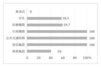 対象は鳥取駅周辺公共施設・交通機関及び本校学生とし,QR コードを用いた無記名Web アンケート調査を実施した.調査項目は補助犬認知,補助犬法理解等8項目である.結果を単純集計及び所属別比較(χ²検定)を実施した.